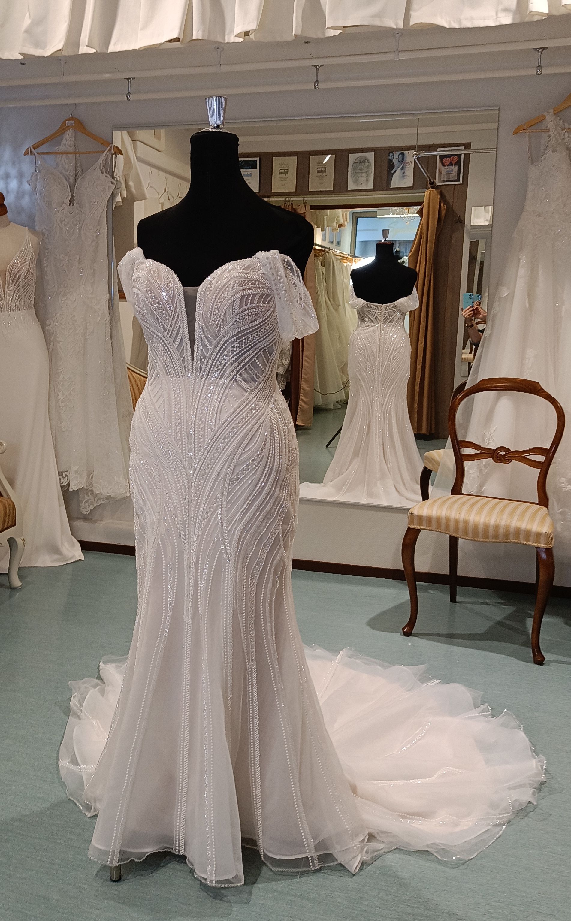 Marabel hääpuvun merenneito helma on kauniisti kirjailtu. Klikkaa kuvaa niin näet upean kirjailun ! Koko 38-40, Ale 950 € ( 1790 € )